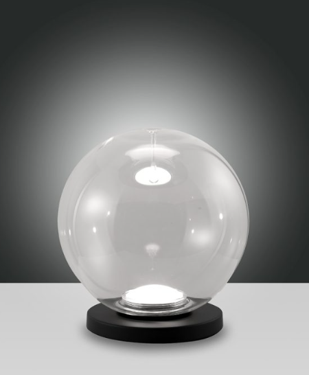 Lampada da tavolo FABAS LUCE ARIEL composta da una struttura in metallo e diffusore in vetro borosilicato con effetto goccia all’interno.