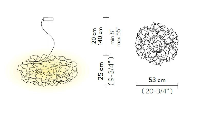 Clizia Mama Non Mama è una lampada a sospensione ispirata alla purezza della natura: i petali leggeri e delicati di questo bouquet luminoso portano negli interni una ventata di aria fresca. Realizzata a mano tramite un sistema di incastri di Cristalflex® è un inno alla gioia, alla femminilità, all’amore primordiale, alla purezza dei sentimenti. L’effetto craquelé permette al petalo di essere più resistente, avere uno spessore maggiore e far passare la luce e creare delicati giochi di ombre. Disponibile nella colorazione oro, bianco o nera e in 3 misure M, L o 130.