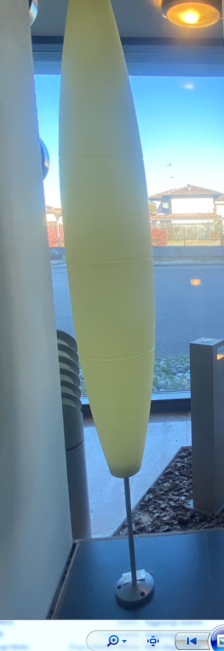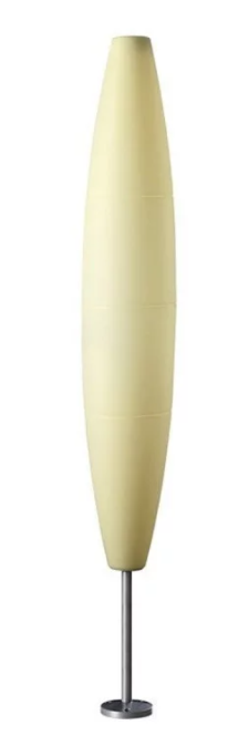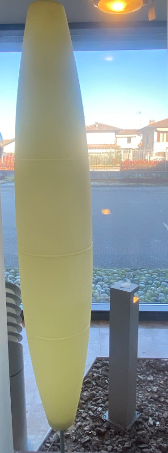 Il corpo della lampada è realizzato in polietilene stampato e metallo di colore giallo crema.