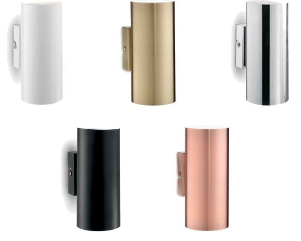 Applique con corpo luce in metallo con finitura rame, cromo, brunito o vernice opaca di colore bianco o nero.
