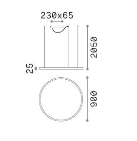 Lampada a sospensione costituita da una montatura sottile in alluminio verniciato bianco o nero opaco e diffusore opale in policarbonato.