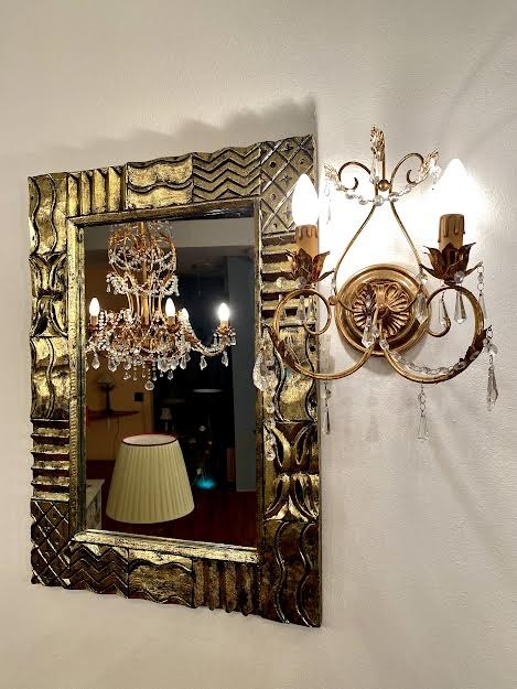 Lampada da parete a due luci in ottone dorato 24k antichizzato con cristalli swarovski