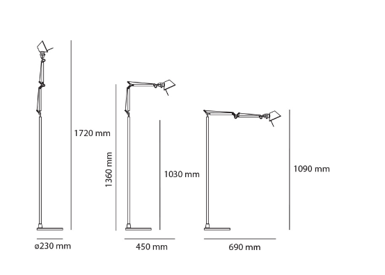 Base e struttura a bracci mobili in alluminio lucidato, diffusore in alluminio anodizzato snodi supporti in alluminio brillantato .