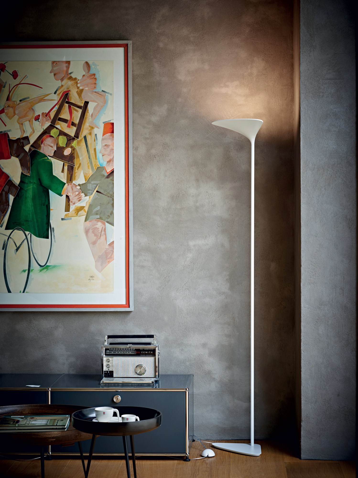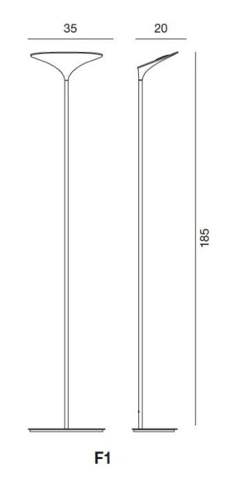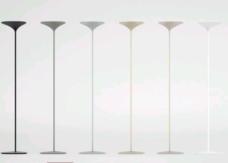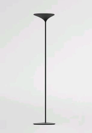 Lampada ad emissione indiretta realizzata in alluminio. All’aspetto emozionale si collega quello funzionale: la testa curva della lampada infatti è stata concepita per sfruttare al meglio la riflessione della luce sulle pareti.