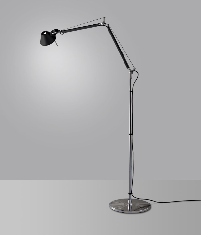 Base e struttura a bracci mobili in alluminio lucidato, diffusore in alluminio anodizzato snodi supporti in alluminio brillantato. Base alluminio